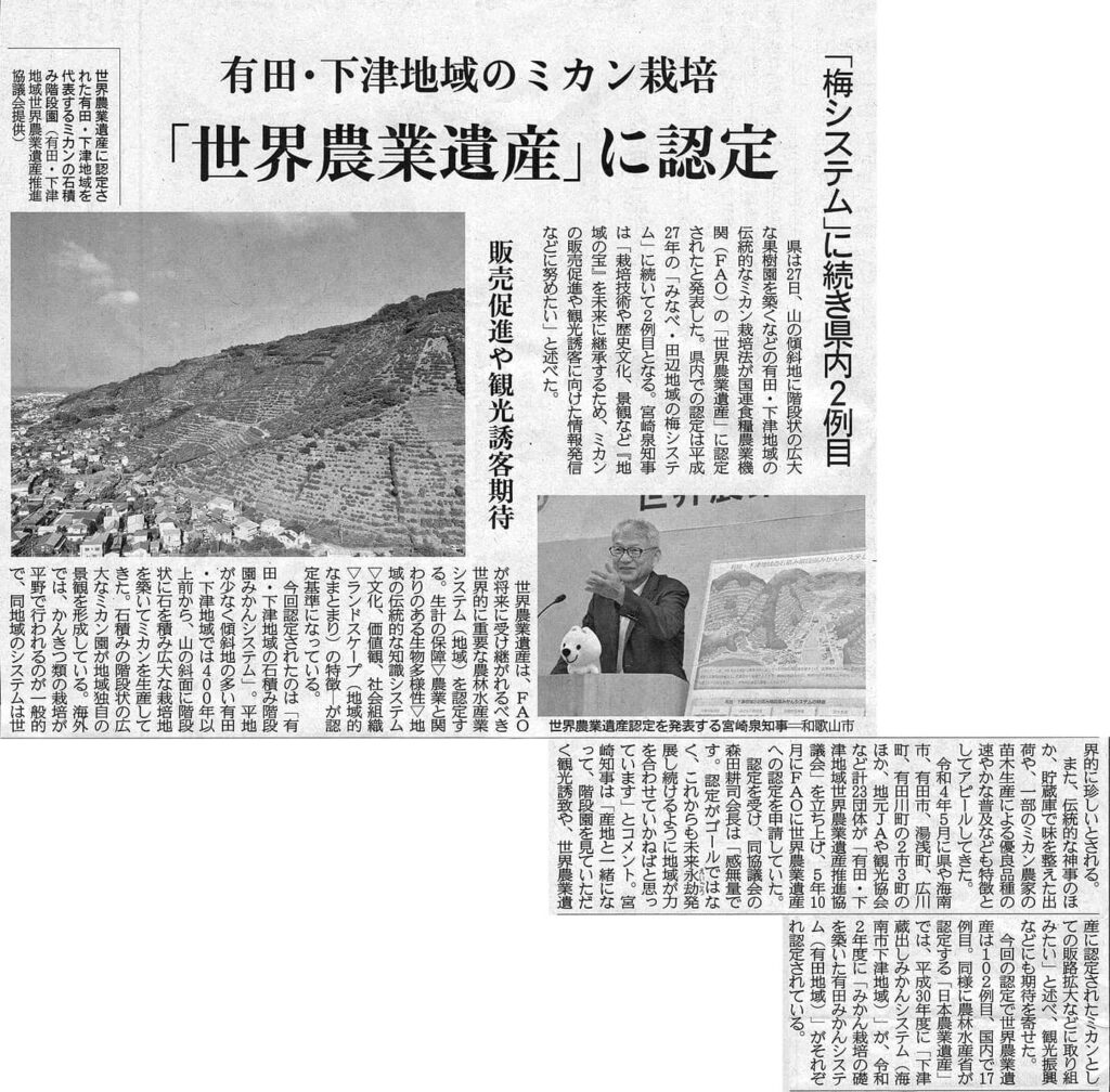 同地域は、2019年に「下津蔵出しみかんシステム」として「日本農業遺産」に認定されていましたが、2025年8月には隣接する有田地域と一体となって「有田・下津地域の石積み階段園みかんシステム」として国連食糧農業機関(FAO)の「世界農業遺産」に認定されました。