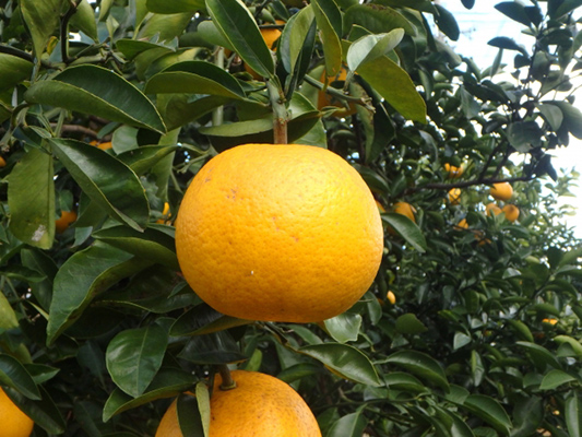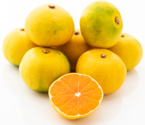 表皮は光沢がありつやつやした鮮やかなオレンジ色をしているのが特徴です。主に関西で出回っていて馴染みのない柑橘ですが、香りが強く酸味と甘みがしっかりあり、濃厚な味わいが楽しめる柑橘です。果汁が多くジュースにもおすすめです。