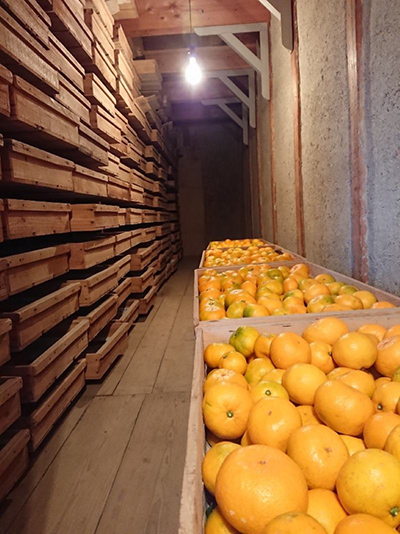 酸味が強く、実の皮に厚みがあります。貯蔵に適したみかんで約一か月ほど土壁の蔵で寝かせて甘味を引き出しています。