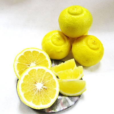 表皮は、明るいレモンイエロー、果汁は多めです。酸味もあって清涼な風味。